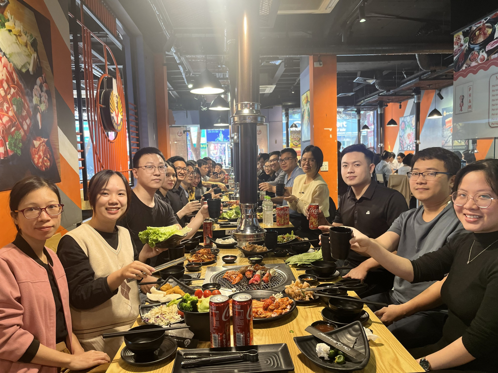 Sau tiết mục tặng quà, Mọi người cùng nhau di chuyển qua địa điểm ăn uống là một nhà hàng sang trọng gần Công ty. Trong thời tiết mùa đông lạnh lẽo, không khí ấm áp bên bàn tiệc và sự giao lưu của đại gia đình TNT đã tạo nên một bữa tiệc đáng nhớ, nơi mọi người có thể thưởng thức đồ ăn ngon và tận hưởng những giây phút trò chuyện vui vẻ. Mọi người cùng nâng cốc chúc mừng Ngày Quốc tế đàn ông kết hợp Sinh nhật tháng 11.