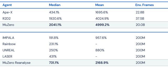 Trong các thử nghiệm nội bộ, kết quả cho thấy MuZero cho hiệu suất tương tự như AlphaZero ở cờ vua, cờ vây và shogi. Và tốt hơn tất cả các thuật toán đã ra mắt trước đó, bao gồm cả Agent57, ở trò chơi Atari. Ngoài ra, nếu càng cho MuZero nhiều thời gian để xem xét một hành động, thì thuật toán sẽ càng hoạt động hiệu quả hơn.
