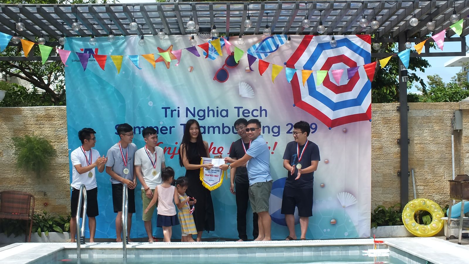Huy chương vàng đã thuộc về team xuất sắc nhất - đội VÀNG. Huy chương, cờ, phần thưởng được trao ngay tại bể bơi.