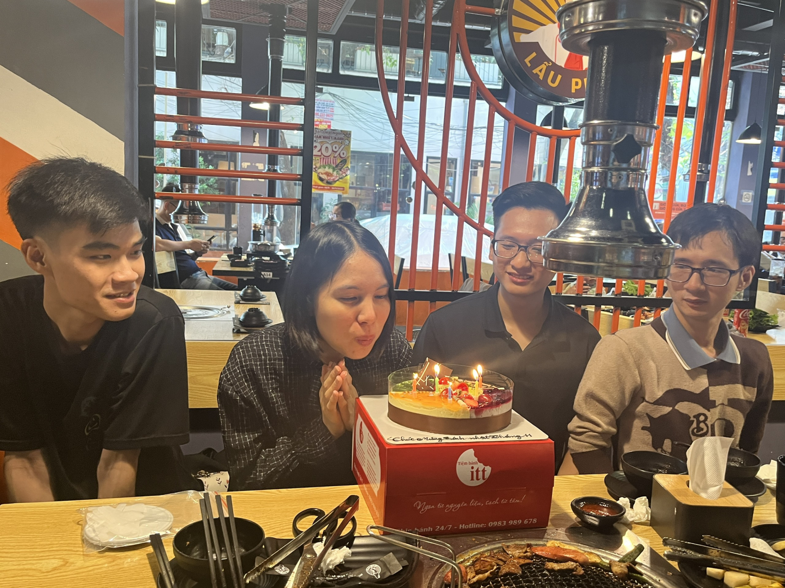 Cuộc vui không chỉ dừng lại ở đó! Một phần không thể thiếu là màn thổi nến và cắt bánh. Bánh sinh nhật rực rỡ, nến lung linh, và tiếng ca chúc mừng đã tạo nên một không khí vui vẻ, nhộn nhịp, đánh dấu sự chia sẻ và gắn kết trong đại gia đình TNT.