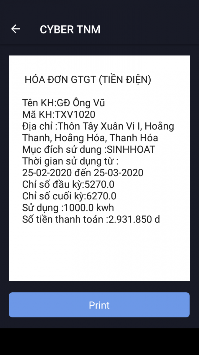 Người sử dụng điện có thể tra cứu hóa đơn điện tử thông qua mã tra cứu được in cùng với biên lai thu tiền.